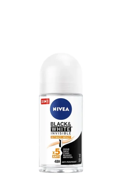 Dlouhodobý pocit svěžesti vám nabídne Nivea Kuličkový antiperspirant Black & White Ultimate Impact, který poskytuje až 48hodinovou spolehlivou ochranu před tělesným zápachem a potem. Jeho jemné složení bez alkoholu propůjčí vaší pokožce lehkou vůni a pocit čistoty, navíc nezanechává bílé stopy na tmavém oblečení a žluté skvrny na oblečení bílém.